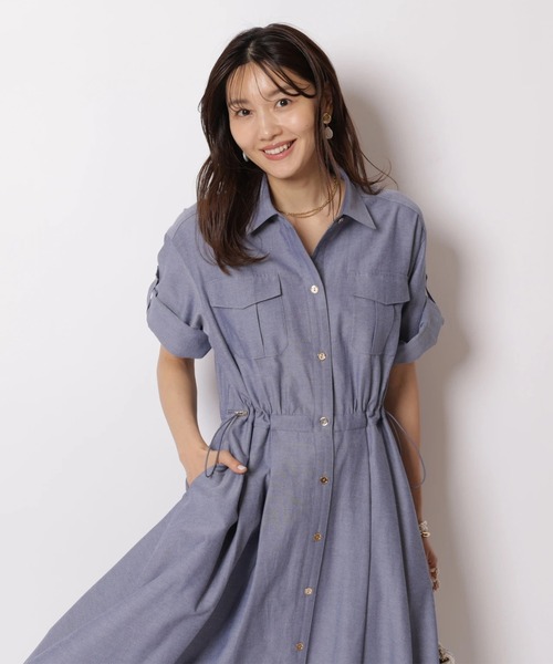 程よく力の抜けたワークディテールを取り入れたシャツワンピース。 フロントポケットや比翼風のデザインが程よいアクセントになりつつ、落ち感のある素材とウエスト切替で女性らしいシルエットに仕上げています。 フラットシューズでカジュアルに、ヒールやパンプスを合わせればきれいめなお出かけスタイルにも対応します。 【ご注意】 ※撮影照明の関係により、実際の商品と色味が異なって見える場合がございます。 また、パソコン・スマートフォンなどの環境により、製品と画像のカラーが異なる場合もございます。 予めご了承ください。 ※商品画像はサンプルのため、色味やサイズ等の仕様に変更がある場合がございますので、予めご了承ください。
