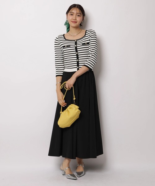 配色ラインとスクエアネックが印象的な上品見えのドッキングワンピース。 トップス部分はすっきりと、スカートは落ち感のあるシルエットでバランス良く仕上げました。 一枚で整うデザインなので、きれいめシューズを合わせて通勤やお出かけにも活躍します。 【ご注意】 ※撮影照明の関係により、実際の商品と色味が異なって見える場合がございます。 また、パソコン・スマートフォンなどの環境により、製品と画像のカラーが異なる場合もございます。 予めご了承ください。 ※商品画像はサンプルのため、色味やサイズ等の仕様に変更がある場合がございますので、予めご了承ください。