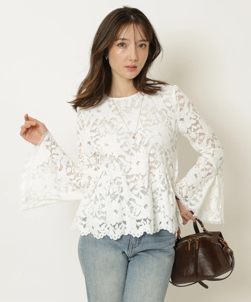 華やか雰囲気を纏う、繊細なレースをあしらったブラウス。手を動かすたびに優美に揺れるへプラムデザインが、女性らしい上品な雰囲気をプラスします。コンパクトな丈感はコーデをスッキリと仕上げ、様々なボトムスと好相性。デニムと合わせた甘カジュアルコーデもおすすめです。【ご注意】※撮影照明の関係により、実際の商品と色味が異なって見える場合がございます。また、パソコン・スマートフォンなどの環境により、製品と画像のカラーが異なる場合もございます。予めご了承ください。※商品画像はサンプルのため、色味やサイズ等の仕様に変更がある場合がございますので、予めご了承ください。