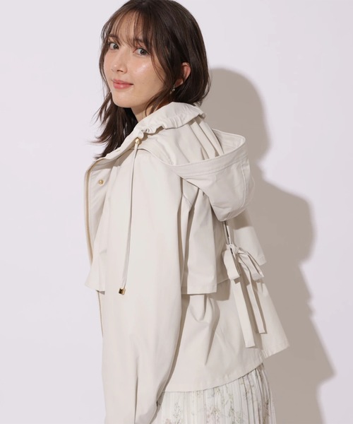 バックリボンが大人キュートなフード付きブルゾン。ヨーク切替の立体的なシルエットがゆるっとラフな雰囲気をプラス。コンパクトな丈感で様々なコーデにもフィットし、羽織るだけでこなれ感を演出します。【ご注意】※撮影照明の関係により、実際の商品と色味が異なって見える場合がございます。また、パソコン・スマートフォンなどの環境により、製品と画像のカラーが異なる場合もございます。予めご了承ください。※商品画像はサンプルのため、色味やサイズ等の仕様に変更がある場合がございますので、予めご了承ください。