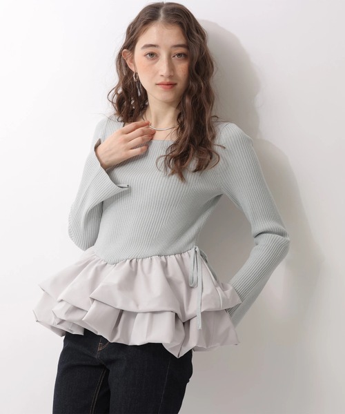 女性らしいディテールを詰め込んだ異素材ドッキングトップス。ティアード切替えがウエストラインにボリュームをもたせ、気になる腰回りをしっかりカバー。首周りはスクエアネックで女性らしさを強調。シンプルなボトムスでも華やかに映え、カジュアルからセミフォーマルまで着回し力も抜群です。【ご注意】※撮影照明の関係により、実際の商品と色味が異なって見える場合がございます。また、パソコン・スマートフォンなどの環境により、製品と画像のカラーが異なる場合もございます。予めご了承ください。※商品画像はサンプルのため、色味やサイズ等の仕様に変更がある場合がございますので、予めご了承ください。
