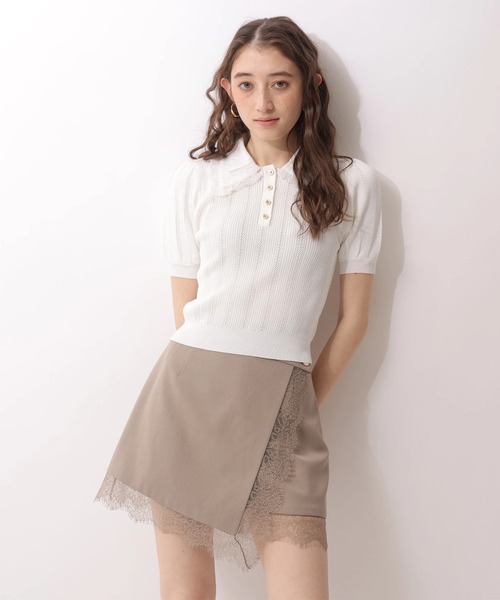 レース切替のデザインが目を惹くラップスカート。裾に向かって緩やかに広がるAラインシルエットは、レッグラインを美しく魅せ、脚長効果を発揮。チラリと覗くサイドボタンがアクセントに。シンプルなトップスと合わせても存在感を放つ主役級アイテムです。【ご注意】※撮影照明の関係により、実際の商品と色味が異なって見える場合がございます。また、パソコン・スマートフォンなどの環境により、製品と画像のカラーが異なる場合もございます。予めご了承ください。※商品画像はサンプルのため、色味やサイズ等の仕様に変更がある場合がございますので、予めご了承ください。