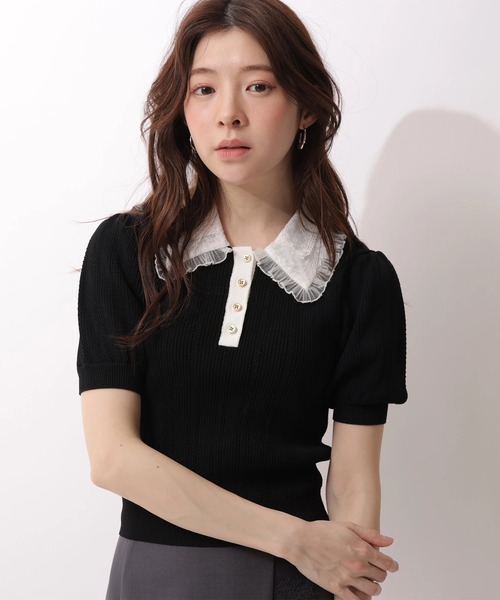 顔周りを華やかに魅せるフリルカラーをあしらったニット。縦ラインに沿ったアイレットが程よい抜け感を演出。袖口と裾口のリブ仕様は、シルエットに女性らしいメリハリをプラス。コンパクトな丈感でボリュームのあるボトムスでも、すっきりとした着こなしを楽しめます。【ご注意】※撮影照明の関係により、実際の商品と色味が異なって見える場合がございます。また、パソコン・スマートフォンなどの環境により、製品と画像のカラーが異なる場合もございます。予めご了承ください。※商品画像はサンプルのため、色味やサイズ等の仕様に変更がある場合がございますので、予めご了承ください。