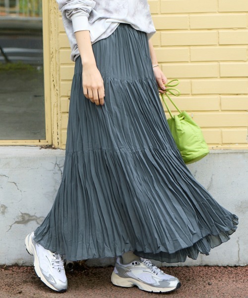 ふんわり揺れるシルエットが魅力!シアーティアードスカートで軽やかな着こなしを。 ■デザイン 裾に向かって広がるシルエットが、 歩くたびにふんわりと揺れ、 女性らしい優雅な印象を与えます。 ウエストはゴム仕様で、 快適な履き心地を実現しています。 全体的にプリーツ加工が施されており、 立体感と動きのある表情が魅力です。 カラーは落ち着いたダークグレーで、 様々なトップスと合わせやすい汎用性の高い色合いです。 ■素材 シアー素材を使用しており、 程よい透け感が涼しげで軽やかな印象を与えます。 シワになりにくく、 お手入れがしやすいのが特徴です。 裏地が付いているため、 透け感を気にせずに着用できます。 ■おすすめのスタイリング Tシャツやスウェットと合わせて、 スニーカーやフラットサンダルを履くと、 リラックス感のあるカジュアルスタイルが完成します。 画像のように、白やライトグレーのトップスと合わせると、 スカートのダークグレーが引き立ちます。 アクセントカラーとして、 鮮やかな色のバッグや小物を加えると、 おしゃれ度がアップします。 ブラウスやニットと合わせて、 ヒールのあるサンダルやパンプスを履くと、 きれいめな印象になります。 ジャケットやカーディガンを羽織ると、 オフィスにも対応できる上品なスタイルになります。 季節の変わり目には、 薄手のニットやカーディガンと合わせることで、 長く着用できます。 足元は、スニーカーでカジュアルダウンしたり、 ブーツでモード感をプラスしたりと、 様々な表情を楽しめます。 <仕様> [裏地]有(総裏) ウエスト総ゴム 透け感:透けにくい 伸縮性:なし 生地の厚み:普通 光沢感:ややあり 裏地:あり ポケット:なし ウエスト:総ゴム 季節:春・夏・秋 シルエット:ゆったり <洗濯方法> 洗濯機OK ネット使用 ●サイズに関して● SMILELANDは大きいサイズ専門店として、サイズ設計にとことんこだわります! 着心地良くおしゃれを楽しめるよう、独自のサイズ設計になっております。 そのため、他ショップ様のサイズより少し大きめに感じられることがあります。 <対応サイズ>を参考にしていただき、お買い物をお楽しみください。 <対応サイズ> M :ウエスト:64~69/ヒップ:91~95 L :ウエスト:69~77/ヒップ:92~100 LL :ウエスト:77~85/ヒップ:97~105 3L :ウエスト:85~93/ヒップ:102~110 4L :ウエスト:93~101/ヒップ:107~115 5L :ウエスト:101~109/ヒップ:112~120 ※こちらはヌードサイズです。 ※平置きのアイテムサイズとは異なる計測方法となりますのでご了承ください。 #ゆったり#体型カバー#二の腕カバー #大きいサイズ#プラスサイズ#大きいサイズレディース #M#L#LL#3L#4L#5L 【気になる商品はお気に入り登録がおすすめ】 ▼商品のお気に入り登録 完売カラーの再入荷通知や、ラスト1点の通知、セールの通知などお得な情報が受け取れます。 ▼ブランドのお気に入り登録 新商品や再入荷など、ブランドのお得な情報をいち早く受け取ることができます。 ●SMILE LANDコンセプト● 「好きな服だけ着ていたい!」 自由なサイズ選びで楽しめるファッションを提案します。 ▼公式インスタグラム @la_smileland プラスサイズモデルさんの着用コーデや動画など随時更新しております。 是非チェックしてみてください♪