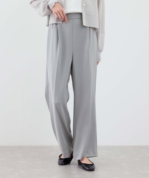 【素材感】 ・シルエットを美しく見せる、しなやかな落ち感のある素材を使用。 ・動くたびに揺れ感が生まれ、軽やかな印象。 【デザイン・シルエット】 ・裾に向かってやや広がる、上品な微フレアシルエットのパンツ。 ・歩くたびに裾が揺れ、フェミニンで軽やかな雰囲気を演出。 ・脚のラインをさりげなくカバーし、ゆとりを持たせたタックデザイン。 ・骨格ストレート・骨格ナチュラルの方にもおすすめの、スタイルアップが叶う一本。 ・ウエストは着脱しやすいプルオン仕様で、快適な穿き心地。 【カラー】 ・ベーシックで使いやすいブラック、チャコールに加え、 シャツやニットとも相性の良い、スモーキーでやさしいトーンのサックス、イエローの全4色展開。 【スタイリングポイント】 ・微フレアのすっきりとしたシルエットには、シャツを合わせたコーディネートがおすすめ。 ・ひざ位置をすっきり見せるデザインで、バランスが取りやすく、こなれた印象の着こなしに。 ----------------------------- 裏地:なし 光沢感:なし 透け感:なし 伸縮性:あり ウエスト:一部ゴム ファスナー:なし ポケット:あり(後ろはフェイク) ボタン:なし 生地の厚さ:やや薄手 季節:春、夏、秋 ----------------------------- ※撮影時の光、お使いのモニター環境によって色の見え方が違う場合がございます。 ※XS,XLサイズはWEB限定展開です。 【モデル着用サイズ】 身長:168cm 着用サイズ:M 【2026 Spring/Summer】【26SS】