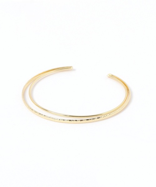華奢なツインラインがポイントのバングル。1つつけるだけで、重ね付けしているように見える万能アイテムです。