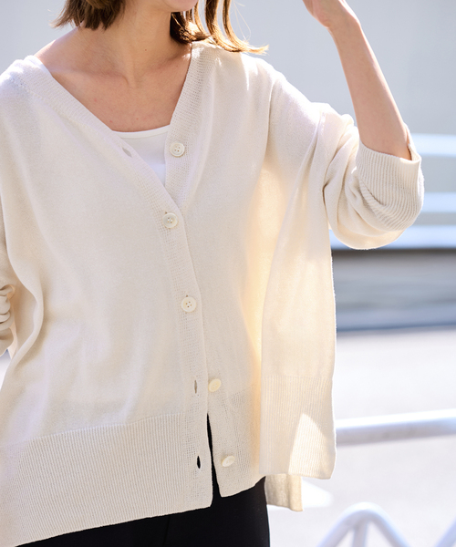 軽やかなペーパーコットン素材を使用し、トルコオーガニックコットンの滑らかさと美濃和紙のドライタッチを兼ね備えた贅沢なカーディガン。国内で丁寧に作られた素材は、春から夏にかけて爽やかな着心地を叶えます。ゆったりとしたサイジングで、軽やかに羽織れるリラックスしたムードが魅力。前後差のある着丈とサイドスリットが動きにニュアンスを与え、着るだけでこなれた印象に仕上がります。**********************透け感:あり裏地:なし伸縮性:あり光沢感:なし生地の厚さ:普通**********************※カラーによりアテンションが異なります。サックスブルー(048):日光や蛍光灯の光に弱く、色あせ(変色)しやすい性質があるので、長時間の直射日光は避けてください。※取り扱いについては、商品についている品質表示でご確認ください。※こちらの商品は、FRAMeWORK での取り扱いになります。直接店舗へお問い合わせの際は FRAMeWORK 店舗へお願い致します。※照明の関係により、実際よりも色味が違って見える場合があります。またパソコン・スマートフォンなどの環境により、若干製品と画像のカラーが異なる場合もございます。予めご了承の上ご注文ください。※商品の色味は、商品アップ画像をご参照ください。本体:手洗い可能