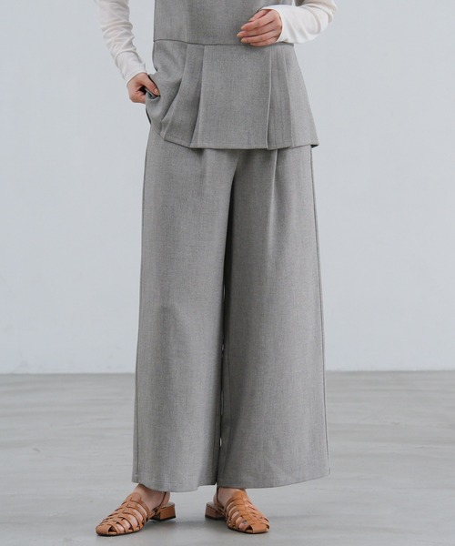 ワイドストレートシルエットのイージーパンツ。 ウエストゴム仕様で着脱もしやすく、紐もアクセントになった1本です。 フロントのタックでもも周りにゆとりもあり、脚のラインをひろわないデザインなのでラフな穿き心地もポイント。 【素材】 さらっとした薄手の素材感。 リネンのようなドライタッチな風合いで気温の高い時期におすすめ。 【スタイリング】 きれい目なアイテムとの相性〇 同素材のジャケットやベストとのセットアップスタイルもおすすめ。 ▼同素材を使用したジャケットはこちら ブランド品番:654319 ZOZO商品コード:104490747