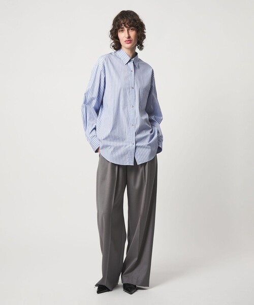 抜け感とモードな雰囲気が共存する、メンズライクなややゆったりとしたシルエットのシャツ。しなやかなハリがある仕立て映えする生地感で、ゆったりとしたシルエットながらすっきりと凛とした印象に導きます。季節を問わず袖を通せ、一枚着のほかジャケットやニットのインナー、ベストとのレイヤード、軽い羽織りとしても活躍。ストライプ柄が着こなしのアクセントにもなる、大人のスタイルに欠かせない一着です。============================裏地:なし透け感:なし伸縮:なし光沢感:なし============================【注意事項】※商品に「取り扱い上の注意書き」、「洗濯表示」がございます場合は、使用前に必ずご確認ください。※商品画像は、光の当たり具合やパソコンなどの閲覧環境により、実際の色味と異なって見える場合がございます。あらかじめご了承ください。※商品の色味の目安は、商品単体の画像をご参照ください。店舗へお問い合わせの際は、全国の6(ROKU)各店舗まで下記の品名/品番をお申し付けください。品名:6 C STRIPE SHT** 品番:86112000007