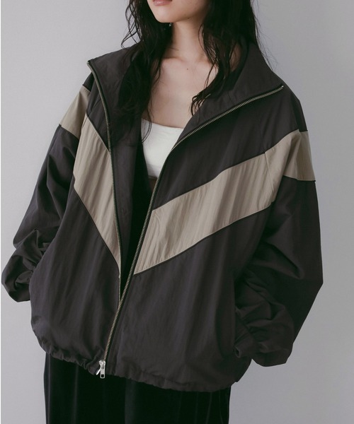 スポーティーなムードをベースに、都会的なバランスで仕上げたナイロンブルゾン。ゆとりのあるサイジングが生むリラックス感に、フロントから肩へと走るVラインの配色切り替えが程よいアクセントを添えます。切り替えにはコードパイピングを施し、細部の表情にもこだわりました。 ラフにカジュアルにスタイリングするのはもちろん、あえて甘めのスカートやワンピースと合わせて女性らしくまとめるのもおすすめです。