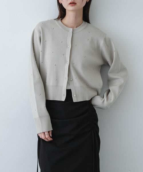 【遊び心を添えた旬のシルエット。スタッズが際立つモチモチニットカーディガン】・モチモチとしたニット素材を採用し、思わず触れたくなるような心地よい肌触りを実現・ドット柄のように配置されたスタッズ使いが、シンプルなボディに可憐なアクセントをプラス・腰位置を高く見せる短めの着丈で、どんなボトムスともバランス良くスタイルアップを演出柔らかな質感と、エッジの効いたスタッズディテールが絶妙にマッチした一着。モチモチとした弾力のあるニット素材は、等身大の日常に寄り添う快適な着心地を叶えてくれます。ドットのように散りばめられたスタッズが、光を受けてクリアでシンプルな佇まいに華やぎを。コンパクトなシルエットなので、ボリュームのあるスカートやワイドパンツと合わせるだけで、自分らしい旬のスタイルが完成します。【2026 Spring/Summer】【26SS】※この商品は素材や編み地の特性上、ゆがみが生じます。一枚一枚サイズや風合いに違いがあります。また、商品自体の重さで伸びてしまうことがあります。あらかじめご了承ください。※その他お取り扱いに関しましては、商品に付属のアテンションタグをご覧ください。総重量 : 約350g※商品画像は、光の当たり具合やパソコンなどの閲覧環境により、実際の色味と異なって見える場合がございます。予めご了承ください。※商品の色味の目安は、商品単体の画像をご参照ください。▼お気に入り登録のおすすめ▼お気に入り登録された商品は、マイページにて現在の価格情報や在庫状況の確認が可能です。お買い物リストの管理にぜひご利用ください。素材感透け感 : なし伸縮性 : あり裏地 : なし光沢 : なしポケット : なしOne