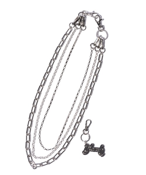 着脱可能なトリプルレイヤードがマルチなスタイリングを叶える2WAY Stack Chain。3種の異なるチェーンは腰元にリュクスな存在感を演出。glambスピンロゴのチャームもアクセントとなるこちらは気分に応じて単体使いや2連使いのアレンジも可能に。さらに取り外せばネックレスとしても着用できる、使い回しに優れた一本です。 ■About glamb 2003年、“Grunge for Luxury”をコンセプトにデザイナー古谷完が東京で設立。 グランジやロックスタイルを基調とした洋服作りはアーティストやタレントの間にも愛用者が多く、音楽や映画、ドラマといった映像への登場も数多い。 数々のコラボレーションも近年ではブランドの代名詞。 ザ・ローリング・ストーンズ、忌野清志郎、hideといったアーティストに加え、『ジョジョの奇妙な冒険』 『チェンソーマン』といった作品まで幅広いコラボレーションを発表している。