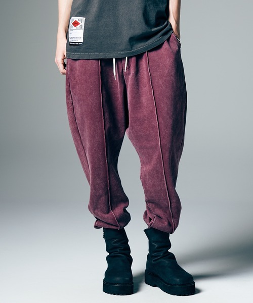 スウェットパンツとスラックスを掛け合わせ、アダルトなイージースタイルを提案するFade Sweat Jogger Slacks。縫製後に特殊な薬剤処理とウォッシュを施してヴィンテージライクな風合いに仕上げる一方、シルエットはセンタークリースを模したステッチをアクセントにした上品なテーパード。ウエストにはドローコードとともにベルトループも備えることでフォーマルなニュアンスを巧みに演出しています。裾はゴム仕様にして足元をスポーティにまとめつつ、バックスタイルにはオールドスクールなデザインを描いたスペックタグを仕様。リラックスとドレスのどちらにも傾き過ぎない独自のバランスが魅力となる1本です。 【身長別推奨サイズ】 サイズS : ~167cm サイズM : 168cm~174cm サイズL : 175cm~ *体型により個人差がありますことをご容赦ください。 ■About glamb 2003年、“Grunge for Luxury”をコンセプトにデザイナー古谷完が東京で設立。 グランジやロックスタイルを基調とした洋服作りはアーティストやタレントの間にも愛用者が多く、音楽や映画、ドラマといった映像への登場も数多い。 数々のコラボレーションも近年ではブランドの代名詞。 ザ・ローリング・ストーンズ、忌野清志郎、hideといったアーティストに加え、『ジョジョの奇妙な冒険』 『チェンソーマン』といった作品まで幅広いコラボレーションを発表している。