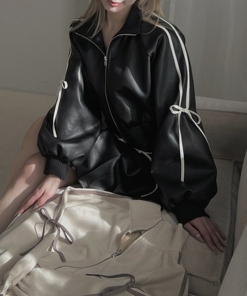 程良くコンパクトなサイジングでカジュアルな印象の中に女性らしさも兼ね備えたトラックジャケット。両サイドに施された配色ライン×リボンがアクセントとなり目を惹くポイントです。ダブルZIP仕様となっており、お好みに合わせて様々な着こなしをお楽しみいただけます。ベージュ・ブラウンは滑らかな風合いのスエポン素材、ブラックはスタイリッシュな雰囲気を演出するレザーを使用しておりバリエーション豊かなラインナップも魅力◎お手持ちのアイテムとのスタイリングはもちろん、同素材のスカート【74613216】とのセットアップコーデもおすすめです。**********************透け感:なし裏地:ブラックあり伸縮性:ベージュ・ブラウンあり光沢感:ブラックあり生地の厚さ:普通ファスナー:あり付属品:なし**********************※商品画像はサンプルのため、色味やサイズ等の仕様に変更がある場合がございますので、予めご了承下さい。※取り扱いについては、商品についている品質表示でご確認ください。※こちらの商品は、ROYAL PARTYでの取り扱いになります。直接店舗へお問い合わせの際はROYAL PARTY店舗へお願い致します。※照明の関係により、実際よりも色味が違って見える場合があります。またパソコン・スマートフォンなどの環境により、若干製品と画像のカラーが異なる場合もございます。予めご了承ください。※サイト上のカラー名と、お届け商品に記載されているカラー名が異なる場合がございます。【商品のお気に入り登録】お気に入りアイテムの値下げ・再入荷・在庫1点などの通知を受け取ることができます。⇒カートの右のハートをクリック 【ブランドのお気に入り登録】新商品や再入荷、セール、クーポン配布などお得な情報を受け取ることができます。⇒上部ブランド名をクリック※お気に入りをするとZOZOのお気に入りアイテムページで簡単にcheckできて再検索不要です※