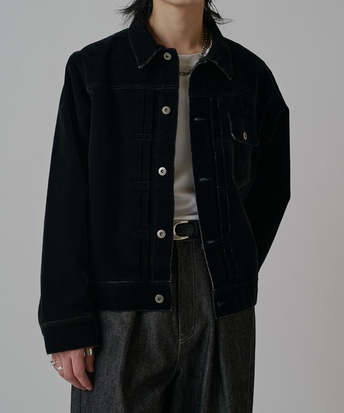 Lui's(ルイス)26SS フロッキートラッカーデニムジャケット 素材には、コットンデニムにフロッキー加工を重ねた、独自の奥行きと質感を持つプレミアムなフロッキーデニムを採用しました。 ヴィンテージの趣を纏いながらも、現代的なエレガンスを感じさせる表情豊かなデニムジャケットです。 シルエットは、着丈に対してゆとりを持たせた端正なボックスシルエットを採用。 フロントポケットには、クラシックなTYPE 1stをベースにしたアシンメトリーデザインを取り入れ、個性と洗練を兼ね備えた佇まいに仕上げています。 さらに生地表面には、ウォッシュとケミカルバイオ加工を重ねることで、陰影が浮かび上がるような立体的な質感を実現。 カラーは、研ぎ澄まされたモード感を放つブラックと、品良くストリートムードを纏うブラウンの2色をご用意しております。 特徴的な素材感と、ボックスシルエットがポイントのデニムジャケットなので、キレイ目なワイドパンツと組み合わせたキレイめなコーディネートや、同素材で展開しているデニムパンツと組み合わせたセットアップもオオススメです。 -------------------------- 透け感/なし 裏地/なし 伸縮性/なし 光沢感/ややあり 生地の厚さ/やや厚め -------------------------- 【ブランド】 Lui's(ルイス) モテる男のワードローブをテーマにモード&ストリートのMIXコーディネートを提案。 着心地、カッティング、素材感を重視した商品を国内外問わず編集し発信していく。 ■商品のお気に入り登録(ハートマーク) 完売カラーの再入荷、ラスト1点の通知、セールの際の通知を受け取れます。 ■ブランドのお気に入り登録 新商品の入荷など、いち早くブランドのお得な情報を受け取れます。 是非ご利用ください。 【注意事項】 ※画像の商品はサンプルです。実際の商品と色味、仕様、加工、サイズ、素材等が若干異なる場合がございます。 ※工場の生産の都合上、納期が変更になる場合がございます。発送日の前後については予めご了承ください。 ※入荷状況により、お客様への発送が店頭販売より遅れる場合もございます。 ※商品を使用前に、タグ等に記載されている「取り扱い上の注意書き」、「洗濯表示」を必ずご確認ください。 ※商品画像は、光の当たり具合やパソコンなどの閲覧環境により、実際の色味と異なって見える場合がございます。予めご了承ください。 ※ご注文いただいた予約商品のお届け時期の確認は、注文履歴ページより行えます。