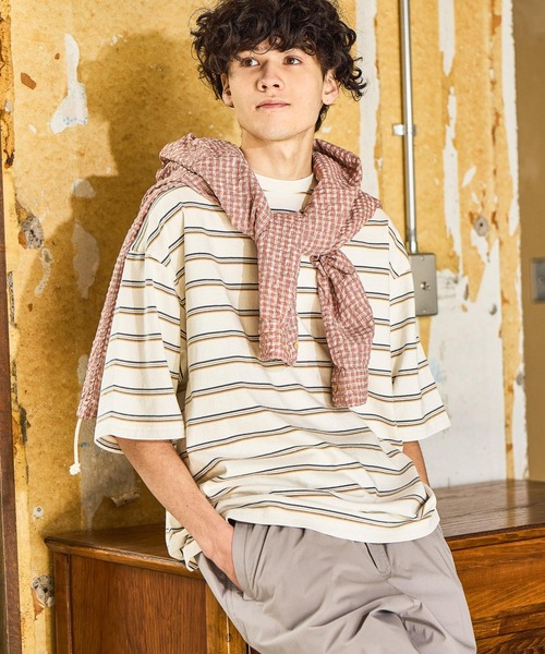 デイリーユースに最適!どのコーデにもはまる万能Tシャツ【素材】USAコットンを使用したショートスリーブTシャツ。さらっとした肌触りと適度なハリ感があり、着用時のシルエットをきれいにキープしてくれます。ピグメント加工によるナチュラルな風合いで、肌なじみの良い着心地も魅力です。【デザイン】無地とボーダーの両タイプにピグメント加工を施し、程よく色あせたようなヴィンテージ感のある表情に仕上げています。シンプルながらも存在感があり、スタイリングのアクセントになる一枚です。【サイズ】ほどよくゆとりを持たせつつ、だらしなく見えないバランスに調整。Mサイズは体に沿いながらも余裕があり、インナー使いもしやすいサイズ感です。1枚着でもレイヤードでも着回しやすいシルエットになっています。【コーディネート】トレンドの太めデニムやスラックスと合わせることで、より今っぽい着こなしに。シャツや軽い羽織のインナーとしても活躍し、シーズンを問わず使いやすいアイテムです。女性の方がメンズライクに着こなすのもおすすめです。※屋外の光や照明の当たり具合で、実際の商品の色味とカラー別画像の色味に違いが発生する場合がございます。商品の色味はスタジオ撮影の詳細画像にてご確認ください。※商品の色や質感を出来るだけ忠実に再現するよう心掛けていますが、実物と若干異なる場合がございます。※写真を許可無くコピー・転用することは固くお断りします。※取扱いアイテムは店舗により異なる場合がございます。