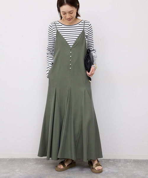 ペチコート付属/肩紐調整可能/手洗い可能 【2026SS】 SLOBE IENA POINT ・流れるような落ち感がきれいなフィブリル素材を使用したキャミワンピース。 【素材の特徴】 レーヨン混素材でとろみや落ち感のある素材。 肌離れが良く、暑い時期まで着用できます。 【デザイン】 フロント部分にボタンを施し、ワンツーコーデでも決まるデザインに。 スカート部分には切り替えを沢山付け、 動いた時のシルエットが滑らかで大きく揺れるようにしました。 【コーディネート】 ボーダーや明るいカラーのインナーで季節感を出すのはもちろん、 手持ちのカットソーまでベーシックに着回せます。 ********************** 透け感:なし 裏地:なし(ペチコート付属) 伸縮性:なし 光沢感:なし 生地の厚さ:やや薄手 ********************** 《スタッフ名:Sally》 年齢:30代後半/身長:162cm/体型:細身/普段サイズ:M/着用サイズ:フリー サイズ感:肩紐で長さ調整できますが、足の甲に着く長さで着用できます。 素材感: やわらかく軽やかに着用できます。 着心地:足回りのラインがでにくく、安心して着用できます。 ********************** ※取り扱いについては、商品についている品質表示でご確認ください。 こちらの商品は、SLOBE IENAでの取り扱いになります。 直接店舗へお問い合わせの際はSLOBE IENA店舗へお願い致します。 ※照明の関係により、実際よりも色味が違って見える場合があります。 またパソコン・スマートフォンなどの環境により、若干製品と画像のカラーが異なる場合もございます。 予めご了承ください。 ※商品の色味は、商品アップ画像をご参照ください。 本体:手洗い可能, ペチコート:手洗い可能