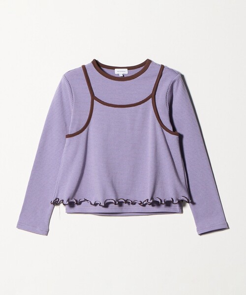 キャミソールとTシャツのレイヤードセット ■デザイン 配色パイピングとメローがアクセントになった、キャミソールとTシャツのレイヤードセット。 Tシャツとキャミがそれぞれ単品使いできるのも高ポイントです。 ふんわり柔らかなボーダー生地を使用しているので、着心地もGOOD◎ ■素材 フライスボーダー生地 ■コーディネート 女の子らしさたっぷりで、普段着にもお出かけにも重宝します。 一枚着としてはもちろん、サロペットなどとの相性もよいので、レイヤードコーデも楽しめそう! ・同デザインでサイズ違いのご用意もございます。対象品番:38121000010 ============================ 裏地:なし 伸縮:ややあり 光沢感:なし ケア方法:Tシャツ:洗濯機洗い可 キャミソール:洗濯機洗い可 ============================ 【注意事項】 ※商品に「取り扱い上の注意書き」、「洗濯表示」がございます場合は、使用前に必ずご確認ください。 ※商品画像は、光の当たり具合やパソコンなどの閲覧環境により、実際の色味と異なって見える場合がございます。あらかじめご了承ください。 ※商品の色味の目安は、商品単体の画像をご参照ください。 ・160cmはWEB限定サイズです。 店舗へお問い合わせの際は、全国のgreen label relaxing各店舗まで下記の品名/品番をお申し付けください。 品名:◆TJボーダーT+CAMI SET 品番:38621000010