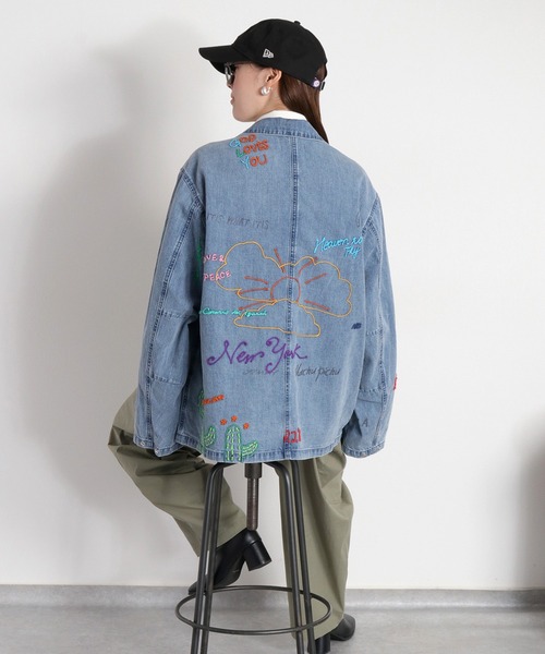 着映え間違いなしの大人可愛いアウター登場♪個性が光る、cepoオリジナルのアート刺繍デニムカバーオール。◇Point◇ワーク感溢れるデニムジャケットに落書きアート風の刺繍&プリントを施した、360°どの角度から見ても着映え間違いなしの1着です。メンズライクなデザインのカバーオールですが、愛くるしいアート刺繍が女性らしい華やかさを演出。ミリタリーテイストな大きめポケットは収納力抜群♪袖にはホックボタンを付けているので袖まくりも簡単です。ユニセックス対応のサイズ感に仕立てており、オーバーサイズでざっくりと羽織れる1着。やや薄手の生地感は春から秋にかけて1軍アウターとして活躍します。他と一線を画した癖ありジャケットで春のお出掛けを楽しみましょう♪◇Material◇柔らかなコットン100%素材。やや薄手の生地感です。それぞれ製品洗いをかけヴィンテージな風合いを表現しています。ライトインディゴブルーは何回か洗いをかけ自然なフォード感を出しています。その分ワンウォッシュに比べ柔らかな生地です。サイド・胸ポケットあり。フロントはスナップボタン仕様です。※照明や天候により実際の色味と異なって見える場合がございます。ご了承くださいませ。【キーワード】#Y2K#10代#20代#30代#40代#50代#トレンド#春コーデ#ライトアウター#羽織#ヴィンテージ#リメイク古着風