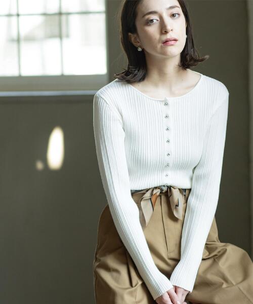 ふんだんに並べた小粒のボタンがトレンド感◎! すっきり見えがかなう、ランダムリブニットカーディガン 【デザイン】 ・リブニットカーディガンに、シルバーの小粒丸ボタンを多めに並べたデザインで、トレンド感たっぷりのニットカーディガン。 ・リブのピッチをランダムにすることで、リブの縦長効果もありつつ、身体に張り付きすぎない、すっきり見えがかなう一枚に。 ・ボタンをしめて一枚で着るのはもちろん、、シアーインナーなどをレイヤードしたスタイリングもおすすめです。 ・あえて裾までボタンをつけず、ボトムスアウトするスタイリングも決まるデザインに仕上げています。 【素材】 ・レーヨン/ポリエステルのハイゲージ糸を使用しており、きれいめに着られる素材感がポイント。 ・マシンウォッシャブルでお手入れも簡単です。 ※照明の関係により、実際よりも色味が違って見える場合があります。また、パソコン・スマートフォンなどの環境により、若干製品と画像のカラーが異なる場合もございます。 店舗へのお問い合わせ商品番号:637-15134 ●製品寸法: 38(M):着丈55cm B73cm 袖丈57cm 肩幅32cm 40(L):着丈57cm B77cm 袖丈58cm 肩幅34cm 42(LL):着丈59cm B81cm 袖丈59cm 肩幅36cm 備考: