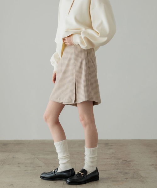 ■素材■最大のポイントは、驚くほど伸びる高ストレッチ素材。タイトなシルエットながら、アクティブな動きにもしなやかにフィットし、一日中ストレスフリーな着心地を叶えます。■デザイン■スリットの入ったシンプルなデザインで使いやすく、どんなアイテムとも合わせやすいボトムス。裾にかけてゆったりとした台形シルエットで、ウエストから脚まで綺麗に見せてくれます。パンツ型のミニスカートなので、安心感のある履き心地です◎トレンドのミニ丈を履きやすく気軽に楽しんでいただけます。後ろウエストは、ゴム仕様になっているのでストレスフリーな使用感です。■スタイリング■ゆったりとしたシルエットのニットやカーディガン合わせが◎ジャケットなどのアウターとの相性も抜群です。
