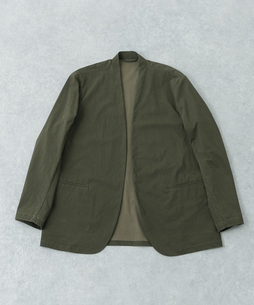 【日本の職人技が宿る「ダスター」の陰影。混繊糸の深みとラペルレスの抜け感が織りなす、大人の軽アウター】こだわりの生産背景から生まれた、他にはないヴィンテージライクな雰囲気を持つ一着です。襟を排除したすっきりとしたルックスは、カーディガンのように気軽に羽織れる使い勝手の良さが魅力。古着のような枯れた味わいと、洗練されたモダンなフォルムが同居し、Tシャツ一枚の上に重ねるだけで、スタイリングにグッと渋みと品格をプラスしてくれます。-MATERIAL-・染色加工が難しいとされる、POLY×NYLONの混繊糸を使用・異素材の組み合わせが未知の質感を生み出し独特な質感・妥協のない品質を求めて、日本での加工にこだわり生産・表面に特殊な加工を施し洗いをいれることで地の色を浮き上がらせて奥行きのある表情-DESIGN-・ラペルレスジャケット・デザインを採用し、インナーを選ばずにレイヤードを楽しめます。・リラックス感がありながらも足元はすっきり・かっちりしすぎない、程よい抜け感のあるシルエット【2026 Spring/Summer】【26SS】※この商品は、長時間強い日光や照明を受けますと、変色するおそれがあります。ご着用や保管の際は、充分にご注意ください。※染色の特性上、洗濯を繰り返すと、色合いや風合いが変化します。※その他お取り扱いに関しましては、商品に付属のアテンションタグをご覧ください。総重量 : 約260g※商品画像は、光の当たり具合やパソコンなどの閲覧環境により、実際の色味と異なって見える場合がございます。予めご了承ください。※商品の色味の目安は、商品単体の画像をご参照ください。▼お気に入り登録のおすすめ▼お気に入り登録された商品は、マイページにて現在の価格情報や在庫状況の確認が可能です。お買い物リストの管理にぜひご利用ください。素材感透け感 : なし伸縮性 : ややあり裏地 : なし光沢 : なしポケット : あり