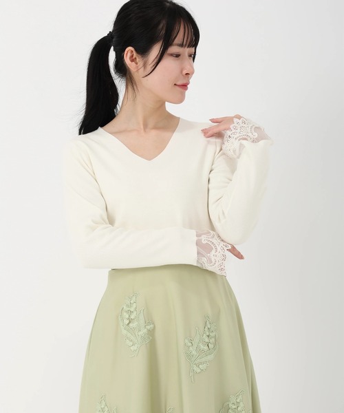 *コンフォートイネス仕草まで美しく、シアーな魔法を。袖口のレースが日常をドラマティックに変える、大人の洗練ニット。 なめらかな肌触りの「コンフォートイネス」に、贅沢なレースを袖口にドッキングしたVネックニットが登場しました。 肌を美しく透かすレースの繊細さと、ニットの持つ柔らかな温もり。 甘さと知性が絶妙に溶け合うデザインは、日常のコーディネートを瞬時に「お出かけ仕様」へと昇華させてくれます。 洗濯:手洗い可能 (※繊細なレースのため、必ずアテンションをご確認ください。) ■ Design & Fabric 素材には、伸縮性に優れ、シルキーな光沢を持つ「コンフォートイネス」を採用。 チクチク感のないストレスフリーな着心地で、身体のラインを拾いすぎず、すっきりと見せてくれます。 深すぎない絶妙なカッティングの「Vネック」が、鎖骨を美しく見せ、お顔周りにシャープな抜け感を演出。 袖口にあしらわれたレースは、あえて手首に少しかかる長さに設定することで、指先までしなやかに、女性らしく見せるよう計算されています。 ■ Styling 袖のレースを際立たせるなら、ボトムスはシンプルな「マルチツイル」のパンツや、タイトスカートがベストバランス。 デニムと合わせれば、カジュアルさの中に色っぽさが漂う大人のミックススタイルが完成します。 Vネックを活かして、小ぶりなネックレスを添えれば、より華やかで品格のある装いに。 コートの袖口からレースを覗かせるレイヤードスタイルも、冬から春への季節の変わり目にぜひ楽しんでいただきたい、とっておきの着こなしです。 《お気に入り登録》はお得がいっぱい! 「商品」のお気に入り登録で、再入荷、ラスト1点、セールなどお得な通知を受け取ることができます。 「ブランド」のお気に入り登録で、新商品や再入荷などいち早くブランドの情報を受け取ることができます。 是非、この機会にご登録くださいませ。