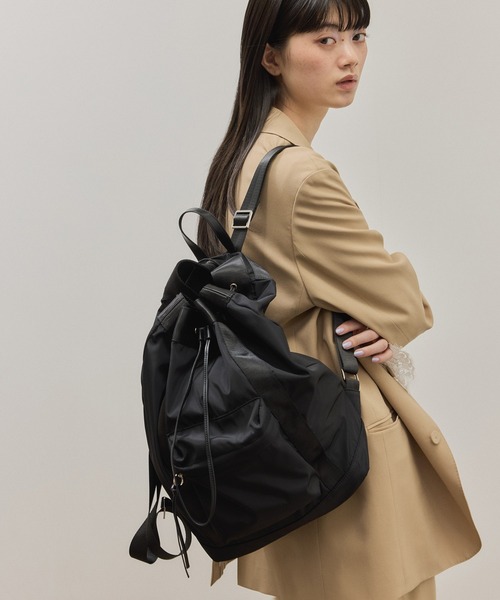 洗練されたミニマルなディティールがデイリーに活躍。艶のある風合いが軽やかに決まる、通勤通学にぴったりな大容量のドロストリュック◇26SS◇ADAM ET ROPE' FEMME【Material】軽量で微光沢のある撥水素材を使用。【Design】アウトポケット付きのシンプルなデザインが魅力のリュックサック。PCやA4サイズがしっかり収まる容量に、内外ポケットを備え、整理しやすく機能性も◎撥水素材と止水ファスナーを採用し、雨の日でも安心して使用が可能無駄を削ぎ落としたミニマルな佇まいで、きれいめからカジュアルまで幅広いスタイリングに自然と馴染むデザイン。通勤・通学はもちろん、休日のお出かけや旅行など、さまざまなシーンで活躍する万能アイテム。【Color】スタイリングを選ばず使える、ベーシックなブラックの1色展開----------------------------ポケット:あり(外1個、内2個)収納:A4→可、長財布→可 付属ショルダー:長さ調節可-----------------------------※撮影時の光、お使いのモニター環境によって色の見え方が違う場合がございます。