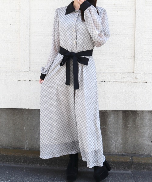 着用するだけでクラシカルなレトローコーデが完成するワンピース。ウエストのリボンと配色の襟、ゴールドのボタンもポイント。袖口もふんわりとしたシルエットなので、よりガーリーな雰囲気に。ウエスト部分は付属のリボンをつけることによってスタイルアップ効果も◎ウエストのリボンはお好きな位置に結んでいただけます。ヒールの高いパンプスやサンダル、ローファーなどを合わせれば、よりクラシカルコーデの完成。ショートブーツなどを合わせれば少しカジュアルコーデに。後ろのウエスト部分はゴム仕様なので、ストレスフリーな着心地◎