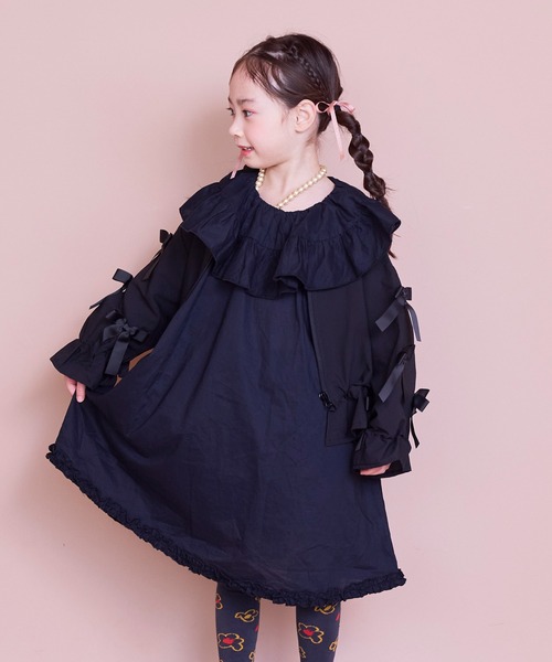 ハレの日を彩る華やかフリルワンピース♡☆☆マーキーズのこだわり☆☆入園入学アイテムは1回着ちゃうと、次の出番がないままサイズアウト...きれい過ぎてフラット着ていけない、クリーニングに毎回出すのもなぁ...を解決するアイテムを作りました!■デザイン顔まわりをぐるりと囲むフリル衿が目をひく華やかなワンピースです。二重になった袖フリルが女の子らしいシルエットを演出します。裾にもフリルをあしらい動くたびに揺れるディテールが可愛らしさをプラスします。バックはゴム入りデザインでかぶるだけでさっと着替えられるのも嬉しいポイントです。■スタイリングカーディガンやブルゾンを羽織って特別な日や記念日のおすましコーデに。もちろん1枚でコーデが完成するので忙しい朝のデイリーコーデに大活躍します。レギンスやデニムをレイヤードすればアクティブな日も安心して動き回れます。■生地感軽やかなコットン素材で汗ばむ季節もさらりとした着心地です。※ペチコート付き※モデルが着用している画像は、照明や日光などの撮影時の環境により実物と異なる色味になる場合がございます。商品単体の平置き画像を実物に近いお色味になるよう努めておりますので、お色味のご確認は平置き画像をご参照くださいませ。※お使いのモニター環境によっても実物のお色味と異なって見える場合がございます。予めご理解の程よろしくお願いいたします。ハートマークをポチッ!気になる商品はお気に入り登録をお忘れなく!商品のお気に入り登録をすると...[再入荷][残り1点][セール情報]を受け取れます。MARKEY'Sをお気に入り登録すると...[新商品][再入荷]の情報をいち早く受け取れます。