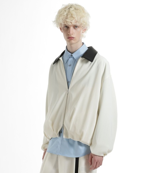 ーーーレザー切り替えの襟が存在感を放つ、モードなジップアップブルゾン。ーーーDESIGN襟部分を合成皮革で切り替えることで素材のコントラストを強調。上品さとモードなエッジを併せ持った、HAREらしい洗練された一着です。ゆとりのあるボリュームシルエットを採用。程よい抜け感とリラックスした佇まいを演出し、インナーを選ばず羽織れる汎用性を持たせています。異素材の切り替えによってスタイリングに奥行きをプラス。カジュアルからモードまで、幅広いスタイルにフィットします。MATERIAL本体にはカルゼ織り生地を使用。独特の斜めのうねが上品な表面感を生み出します。適度なストレッチ性を持たせた素材で、快適な着用感を提供。シワになりにくく扱いやすいのも特徴です。パンツとのセットアップ着用が可能。上下で合わせることで、より統一感のあるハイエンドなモードスタイルが完成します。SET ITEMセットアップ対応アイテムはコチラを検索→【644528】※サンプルにて撮影をしておりますので、実際の商品とは仕様や加工・サイズ等が若干異なる場合がございます。※屋外の光や照明の当たり具合で、実物と色味が異なって見える場合がございます。詳細画像の色味をご確認ください。 なお、商品の色や質感を出来るだけ忠実に再現するよう心掛けておりますが、パソコンなどの環境により、実物と若干異なる場合がございます。※写真を許可無くコピー・転用することは固くお断りします。