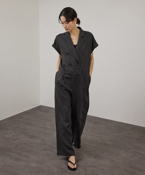 涼やかなヨーロピアンリネンで仕立てたオールインワン。ほどよくゆったりしたシルエットで、1枚でこなれた大人カジュアルが叶うアイテム ■デザイン/シルエット テーラードカラーがシャープで洗練された印象のヨーロピアンリネンオールインワン。 マスキュリンなデザインをリラクシーな生地に落とし込むことで、 きれいめながら抜け感のある大人の一着に仕上げました。 腕が気になりにくい肩幅設計もこだわりポイント。 ボトムはタック入りでウエストや腰回りをさりげなくカバーし、スタイルアップ効果も期待できます。 パンツ部分はファスナー仕様で着脱もスムーズ。 サイドポケットとバックポケット付きで実用性も兼備しています。 ベルトループにベルトを通したアレンジも可能で、 オフィスカジュアルからお出かけまで幅広く活躍。 清涼感のある着心地で、一枚でコーディネートが完成する夏の主役アイテム。 ■素材 原料から繊維までヨーロッパで生産されたヨーロピアンリネン100%を使用。 毛羽立ちを抑える加工により、ナチュラルすぎない上品な表面感を実現しました。 チクチクしにくい優しい肌触りに加え、通気性・吸水性に優れているため汗ばむ季節も快適。 着るほどに肌になじむリネン特有の風合いも魅力です。 ウォッシュ加工でこなれたニュアンスをプラス。サンドベージュとチャコールの落ち着いた2色展開。 ■コーディネート 一枚でさらりと着るだけで、抜け感のある大人カジュアルが完成。 フラットサンダルやスニーカーでリラックス感のある着こなしはもちろん、 ローファーやシンプルなバッグを合わせれば程よくきちんと感のあるオフィスカジュアルスタイルにも。 アクセサリー次第で雰囲気を変えられ、オンオフ問わず活躍します。 ■ヨーロピアンリネンシリーズ一覧 ・商品番号:SHH26120 商品名:ヨーロピアンリネンドロストギャザーブラウス ・商品番号:SHH26110 商品名:ヨーロピアンリネンルジェフリルブラウス ・商品番号:SHS26110 商品名:ヨーロピアンリネンリラクシーワイドパンツ ・商品番号:SHY26110 商品名:ヨーロピアンリネンテーラードオールインワン ■モデル身長:166cm 着用サイズ:F ----------------------------- 裏地:なし 光沢感:なし 透け感:あり 伸縮性:なし 生地の厚さ:薄手 -----------------------------