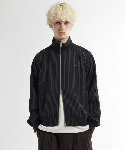 ーーーストライプと布帛仕立てが伝統をモードへ導く、洗練された大人のためのトラックジャケット。ーーーDESIGN今季注目の「伝統をモダンかつキレイ目に着こなす」トレンドを捉え、スポーティなトラックジャケットを布帛生地でドレッシーに再構築。クラシックなピンストライプ柄を採用し、胸元にはミニマルなメタルプレートを配置することで、HAREらしいシャープな感性とモードなエッセンスを注入しました。カジュアルになりがちなスポーツアイテムをシャツやジャケットのような端正な表情に仕上げており、スラックスと合わせても違和感のない洗練されたスタイルが完成します。MATERIAL通常ジャージ素材で作られることの多いトラックジャケットを、あえて布帛生地で仕立てることで、高級感のある佇まいに仕上げています。滑らかな表面感と適度なハリがあり、ラフになりすぎず、大人の品格を保ったまま着用できる素材感です。※サンプルにて撮影をしておりますので、実際の商品とは仕様や加工・サイズ等が若干異なる場合がございます。※屋外の光や照明の当たり具合で、実物と色味が異なって見える場合がございます。詳細画像の色味をご確認ください。 なお、商品の色や質感を出来るだけ忠実に再現するよう心掛けておりますが、パソコンなどの環境により、実物と若干異なる場合がございます。※写真を許可無くコピー・転用することは固くお断りします。
