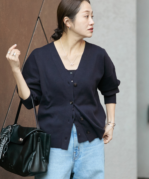 JOURNAL STANDARD コットンのナチュラルな肌触りに、シルクの滑らかさと落ち感をプラスしたVネックカーディガン。 ほどよく開いたVネックがお顔周りをすっきりと見せてくれます。 ボタンを閉めてプルオーバーのように着こなすのはもちろん、肩掛けしてコーディネートのアクセントにするのもおすすめ。 シルク混ならではの柔らかい落ち感がベーシックながら女性らしく見せてくれる一枚です。 ※同シリーズで下記品番もございます コットンシルクミックスVカーディガン(品番 : 26080400327010) コットンシルクミックスタックワイドパンツ(品番 : 26080400329010) コットンシルクミックス2WAYキャミソール(品番 : 26080400328010) コットンシルクミックス2WAYヘンリー(品番 : 26080400330010) ********************** 透け感:なし 裏地:なし 伸縮性:ややあり 光沢感:なし 生地の厚さ:普通 ********************** 【スタッフ着用コメント】 《スタッフK》 年齢:30代前半/身長:162cm/体型:普通/普段サイズ:M/着用サイズ:フリー サイズ感:着丈は長すぎずボトムを選ばない着丈です。 素材感:シルク混。 着心地:柔らかくて着やすいです。 ※あくまでも個人の感想です ********************** ※取り扱いについては、商品についている品質表示でご確認ください。 ※照明の関係により、実際よりも色味が違って見える場合があります。 またパソコン・スマートフォンなどの環境により、若干製品と画像のカラーが異なる場合もございます。 ※商品の色味は、商品アップ画像をご参照ください。 本体:手洗い可能