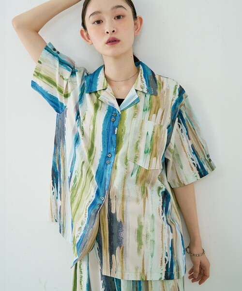 ペイントタッチのプリント開襟シャツ遊び心あるオリジナル柄で作る旬のセットアップ-Design-NOMINE完全オリジナルのペイント柄を全面に配した開襟シャツ。定番の開襟デザインをベースにサイズ感をやや大きくし、ユニセックスで着られるリラックスシルエットにブラッシュアップしました。フロントのボタンは2つ1組で並ぶ配置が特徴(うち1つは飾りボタンのため着脱は簡単)。ドレープが出るポリエステル生地は軽やかで落ち感があり、同柄のパンツやスカート(別売り)と合わせれば統一感のあるスタイリングが完成します。カラーはピンク/グリーン/ブラウンの3色展開。-Cordinate-・パンツとセットアップでワントーン風に。リラックスシルエット×サンダルで休日の抜け感スタイル。・フロントを開けてインナーを覗かせるレイヤード(タンク+ロングネックレス)で都会的に。・あえてメンズライクに着て、足元はヒールで女性らしさをミックスするのもおすすめ。・ピンクは柔らかくフェミニンに、ブラウンは落ち着いた大人の雰囲気、グリーンは爽やかなアクセントに。-クリーニング方法-手洗い可\NOMINEオリジナル柄シリーズ 同柄アイテム/ペイント柄 ドロストコード タックパンツ [商品番号:38523850004]ペイント柄 スリット スカート [商品番号:38523870000]メロー シアー スカーフ [商品番号:38523860000]【注意事項】※商品画像は、光の当たり具合やパソコンなどの閲覧環境により、実際の色味と異なって見える場合がございます。あらかじめご了承ください。※画像の商品はサンプルです。※商品の色味の目安は、商品単体の画像をご参照ください。※商品を使用前に、タグ等に記載されている「取り扱い上の注意書き」「洗濯表示」を必ずご確認ください。※商品に不良が無い場合、包装紙および箱の破損がございましても発送いたします。あらかじめご了承ください。==============▼商品のお気に入り登録▼♡をタップorクリック!完売カラーの再入荷や、ラスト1点の通知、セールの際の通知を受ける事ができます。▼ブランドのお気に入り登録 ▼新商品や再入荷など、ブランドのお得な情報をいち早く受ける事が出来ます。==============