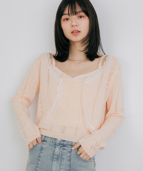 ーーー 【デザイン】 軽やかな透かし編みがシーズンムードを高めてくれる カーディガンとキャミソールのセットアイテムです。 今季らしいレースのトリミングがぱっと華やかな表情に◎ セットで着るだけで大人のフェミニンコーデが完成! ーーー 【スタイリング】 セットコーデはもちろん、単品でも着回せるので キャミソールはインナー使いに◎ カーディガンはワンピースに羽織ったりとスタイリングの幅が ぐんと広がります! ※屋外の光や照明の当たり具合で、実際の商品と画像の色味に違いが発生する場合がございます。 ※サンプルにて撮影をしておりますので、実際の商品とは仕様や加工・サイズ等が若干異なる場合がございます。 --------------------------------------------------------- ▼気になるアイテムはお気に入り登録がおすすめ!▼ 気になる商品は♡をクリックしていただくと、 ・在庫残りわずか ・再入荷 ・セールの情報 などの通知を受け取ることができます。 ▼ブランドのお気に入り登録も!▼ 新商品や再入荷、セール、クーポンの配布など、 いち早くお得な情報を受け取ることができます。 ぜひご登録ください♪