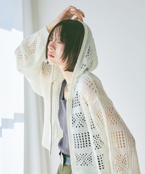 \春らしいカジュアルモードなクロシェ風パーカー!/ アクリルとポリエステル混の清涼感とハリ感のある糸で編み込まれた、オリジナルのクロシェパッチワーク風の編み柄が特徴のアイテムです! ページボーイの定番のショート丈のジップパーカーの型を採用し、どんなボトムに合うオシャレな1枚に仕上がっております! 上下どちらからでも開閉出来るファスナーを使用しており、その時々の気分やスタイリングに合わせて開き具合を調整するのもオススメです! これからの季節に活躍してくれること間違い無し!春が待ち遠しくなるアイテムとなっております! ▼クロシェシリーズ▼ ・クロシェライクニットプルオーバー(アイテム番号:658989) ・クロシェライクエリツキカーディガン(アイテム番号:658993) 〈注意事項〉 ・サンプルにて撮影をしておりますので、実際の商品とは素材や仕様・加工・サイズ等が若干異なる場合がございます。 ・モニター・環境等により実際の商品と色味が多少異なって表示される場合がございます。予めご了承をお願いいたします。 ・撮影環境により、光の当たり具合で色味が違って見える場合があります。あらかじめご了承下さい。 ▼気になるアイテムは《お気に入り登録》がおすすめです! 完売カラーの再入荷情報、セール情報、ラスト1点の通知を受け取ることができます! ▼《ブランドのお気に入り登録》で新商品や再入荷などのお得な情報をいち早くお知らせします。