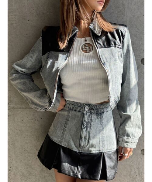 商品コメント: 【TINY】150-156cmの低身長の方向けのTINYシリーズ。 フェイクレザーをヨーク部分にドッキングしたデザインや、 タイトボディーがGYDAらしいデニムジャケットアイテムです。 コーデ: 同企画のスカートとSET UPがマストです。>※着用画像はフラッシュの加減で実際の製品と色味等が異なる場合がございますので、生地のズームアップ画像をご確認ください。※ご利用の端末画面の設定により実際の商品と色味が異なる場合がございます。【商品特徴】透け感:あり / なし伸縮性:あり / ややあり / なし生地の厚さ:薄手 / 普通 /厚手サイズ感:細身 / 普通 / ゆったり裏地:なし / あり / 裏起毛ポケット:あり(前/横/後/内) /なしファスナー:あり(横/後) /なし