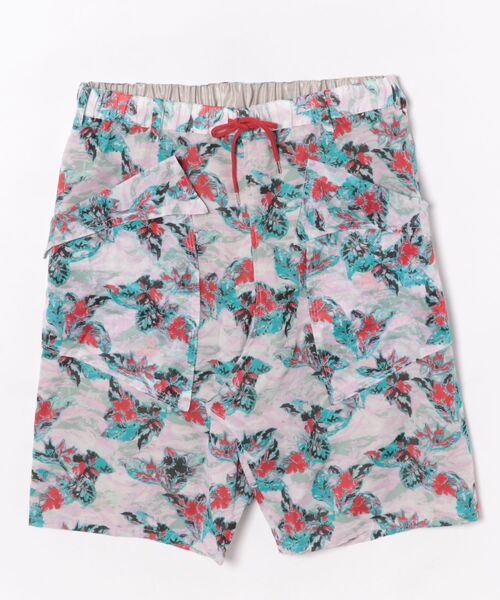 sulvam迷彩柄とハイビスカス柄を合わせたオリジナル生地のアロハショーツ。sulvamヨウジヤマモトでパタンナーとして活躍した藤田哲平が創業。洋服は「人の一部となる物づくり」を根底に置いて制作。服作りの基本を外さない確固たるストラクチャーと、基本を熟知しているからこその柔軟な発想が同居するモードスタイルを発信する。ブランド名は、ラテン語で即興演奏を意味する「Salvum」に由来する。ファッションに携わる全てのプロフェッショナル達が、バンドのジャムセッションのようにそれぞれのインスピレーションを具現化していくプロセスを表している。