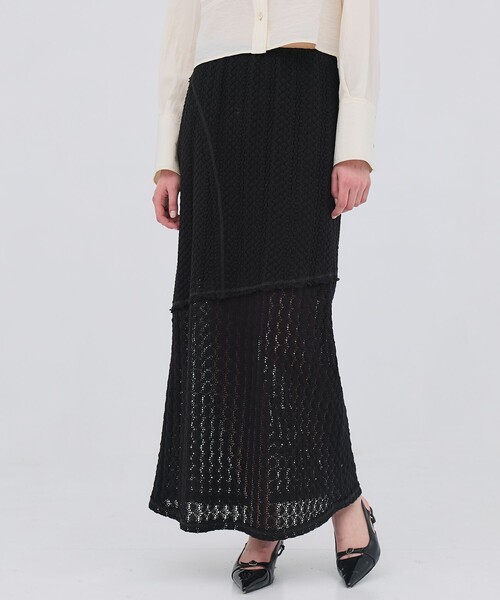 ■デザイン・ウエストゴムで、着脱ができるほど伸縮性が高く快適な着心地。・ギャザーの分量を絶妙に調整し、ウエスト周りが膨らまない。・ラフさを出す断ち切りや、ステッチデザインを施し、フェミニンになり過ぎずカジュアルに使えるレーススカートに仕上げました。・切り替えから裾に向けて少し裾広がりで、女性らしいマーメイドシルエット。■素材国内で稼働している台数が限られたバルファスレース機を使用し、丁寧に編み上げた希少な綿レース。繊細さと耐久性を併せ持つ、特別な風合いが魅力です。オールドの機械を使って作り出した、凹凸感のある素材。綿レースをポイントに2種類の柄を組み合わせ、奥行きのあるアイテムです。--------------------------------------------・透け感 あり・裏地 あり・伸縮性 あり--------------------------------------------【PUBLIC TOKYO】FROM JAPAN TO THE WORLD , ALL MADE IN JAPAN“THE TOKYO CASUAL”日本の伝統的な技術をベースに、 東京の研ぎ澄まされた感性で創り上げる。 新たな、TOKYO CASUAL BRAND。一つひとつの生活の瞬間を、美しく彩るベーシックアイテム。 純度の高いジャパンクオリティーが紡ぐ、機能性と着心地。すべての日常に、優しく寄り添う。 ALL MADE IN JAPAN この価値は、真似できない。さぁ。TOKYOのスタンダードスタイルを。--------------------------------------------お手入れ方法/ドライクリーニング推奨--------------------------------------------▼商品のお気に入り登録お気に入り登録(♡)で、あなた限定のセール/値下げなどのお得な情報や、再入荷、在庫1点などの在庫状況をお知らせします。▼ブランドのお気に入り登録新作商品の再入荷、セール、クーポン配布などのお得な情報を受け取る事ができます。26SS/春服/クリーンカジュアル/オフィスカジュアル/ビジネス/カジュアル/レース/レイヤードスカート