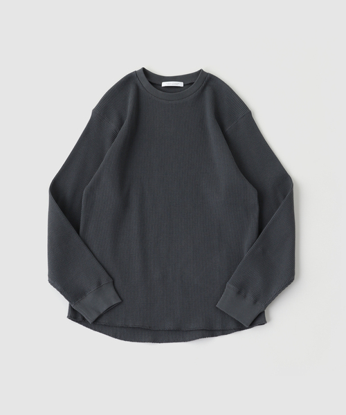 TCサーマル LS■「26070600555010」に、新色を加えた追加新品番になります。大人気の定番ベストセラーアイテムが新色を加えて登場!シンプルなデザインのワッフルクルーネックTシャツ。肌触りの良いTC素材を使用し、サーマル組織でふっくらとした仕上がりになっているため、非常に扱いやすいアイテムです。一枚着でもサマになり、インナー使いではラウンドした裾がコーデにさりげないアクセントをプラスしてくれます。本体:洗濯機洗い(弱)