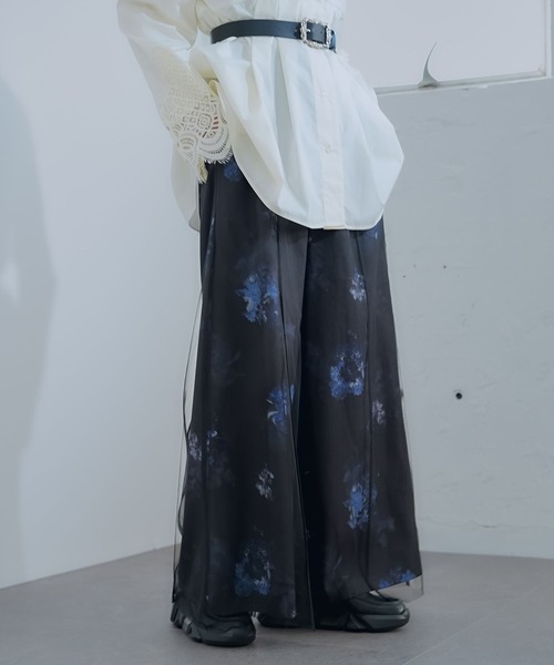 ーーーフラワー柄にシアー生地を重ねたデザイン性抜群のワイドパンツーーーpoint□花柄のアートグラフィックの上にシアー生地を重ねた春らしいデザイン□柄が少しぼやける為、奥行きが出て、幻想的で上品な雰囲気に□チュール素材が少し長めになっており、透け感を楽しめ、抜け感を出せる□センターにラインがある事で、縦のラインが強調され、ワイドシルエットながらもすっきりとした印象□ウエストの後ろ部分がゴムになっており、締め付け感なくストレスフリーな着心地styling骨格ナチュラル:ゆったりとしたスウェットにスニーカーを合わせ、カジュアル要素をミックスさせたスタイリングがおすすめ。骨格ウェーブ:タイトなトップスを選び、ワイドパンツとメリハリのあるスタイリングがおすすめ。ショート丈のアウターを合わせることでスタイルアップ効果に◎骨格ストレート:すっきりとしたシルエットのシャツを合わせ、ジャケットを羽織り大人な雰囲気に。華奢なアクセサリーで落ち着いた洗練された印象に。set itemセットアップで着用可能な同素材のアイテムご用意あり。セットアップ対応のブルゾンはコチラを検索→【653975】セットアップ対応のワンピースはコチラを検索→【653979】※加工を施した画像を使用しております。実物と色味が異なる可能性があるため、色味は詳細後ろにある生地寄り画像を参考にお願いいたします。あらかじめご了承下さい。