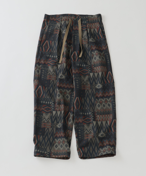 RIRANCHAブッチャー OVER PT快適さとデザイン性を兼ね備えた、大人のためのイージーパンツリラックス感のあるシルエットながらも、上品な素材感で、カジュアルになりすぎないオーバーパンツ。リネン調のポリエステル素材"RIRANCHA"を使用し、軽やかな着心地が魅力です。ゆったりとしたシルエットで動きやすく、裾のドローコードで多彩なアレンジが可能です。普段使いはもちろん、旅行やアウトドアにも最適です。総柄のデザインを施しシンプルになりすぎず、ワンランク上のカジュアルスタイルを演出します。【RIRANCHA / リランチェ】TORAY開発のリネン調のポリエステル素材。上品でナチュラルな表情ながらも、夏でも着易いドライタッチの清涼感が特徴です。肌離れのしやすさやストレッチ性もあり、着心地にも配慮された素材。ポリエステル素材の為、麻のように見えつつもイージーケアになります。**********************裏地:なし伸縮性:ややあり光沢感:なし生地の厚さ:やや薄手**********************※取り扱いについては、商品についている品質表示でご確認ください。※照明の関係により、実際よりも色味が違って見える場合があります。またパソコン・スマートフォンなどの環境により、若干製品と画像のカラーが異なる場合もございます。※商品の色味は、商品アップ画像をご参照ください。