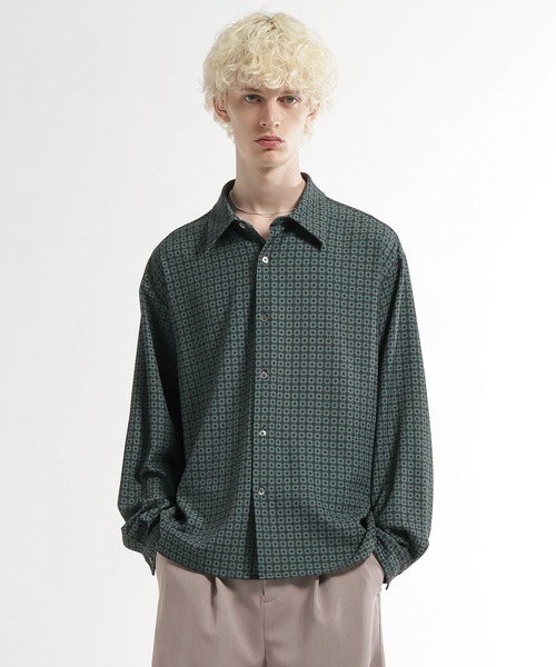 ーーー 伝統的な紳士の柄を、シワを知らない機能素材でモダンに昇華した、HARE流の現代版「江戸小紋」シャツ。 ーーー DESIGN 通常はブロードやポプリンなどのハリのある生地で仕立てられ、紳士服の象徴とされる「小紋柄」を採用。 HAREではその伝統的な格式を保ちつつ、あえてポリエステル素材に落とし込むことで、堅苦しさを排除したモードな一着へと進化させました。 MATERIAL 綿素材特有のシワになりやすさを解消するため、扱いやすいポリエステル素材を採用。 HAREの得意とする落ち感のあるワイドパンツやアウターとも馴染みが良く、クラシックな柄を現代的なリラックススタイルで快適に楽しめる機能的なファブリックです。 ※サンプルにて撮影をしておりますので、実際の商品とは仕様や加工・サイズ等が若干異なる場合がございます。 ※屋外の光や照明の当たり具合で、実物と色味が異なって見える場合がございます。詳細画像の色味をご確認ください。 なお、商品の色や質感を出来るだけ忠実に再現するよう心掛けておりますが、パソコンなどの環境により、実物と若干異なる場合がございます。 ※写真を許可無くコピー・転用することは固くお断りします。