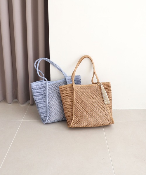 透かし編みの表情が涼しげな、夏らしいかごバッグです。ナチュラルな素材感とすっきりとしたフォルムで、日常の装いに自然になじみます。軽くて持ちやすく、買い物や休日のお出かけに気軽に使える一品です。 透かし編みが爽やかな夏にぴったりのA4サイズトート 【デザイン】 ・透かし編みが涼しげで季節感のある印象 ・メタリックのタッセルチャームがワンポイント ・2種類の編み柄でデザイン性のある仕上がりに ・シンプルなデザインでどんなコーデにも合わせやすい ・A4が入る大きめサイズでレジャーやリゾートシーンにもおすすめ 【機能】 ・内生地付き ・軽量でデイリー使いにおすすめ ・大きく開く口元で荷物が出し入れがしやすい ・タッセルチャームは取り外しができます 【素材】 ・ナチュラルな質感のペーパーシート 【スペック】 ・A4(22×31cm):○ ・長財布(10×20cm):○ ・500mlペットボトル(タテ):○ ・500mlペットボトル(ヨコ):○ ・内ポケット:2 ・総重量:360g 【公式instagram】 @trysil_official 新作アイテムやおすすめ商品の情報を随時UPしております。ぜひチェックしてみてください。 【BRAND】 T・S・L /ティーエスエル 「可愛らしさ」と「デイリーユース」をキーワードに、自分らしいオシャレをするのが大好きな女性に向けたブランド。 ほどよくトレンドをミックスし、手に取りやすい価格で提案。Happyな気分でお出かけできるバッグをお届けします。 【ATTENTION】 ※画像の商品はサンプルです。実際の商品と色味、仕様、加工、サイズ、素材等が若干異なる場合がございます。 ・画像の商品は光の照射や角度により、実物と色味が異なる場合がございます。また表示のサイズ感と実物は若干異なる場合もございますので、予めご了承ください。 【INFORMATION】 ・商品のお気に入り登録 お気に入りアイテムの値下げ・在庫1点・完売後の再入荷などの通知を随時受け取ることができます。 ・ブランドのお気に入り登録 新商品の発売や再入荷、セール、クーポン配布などお得な情報を受け取ることができます。