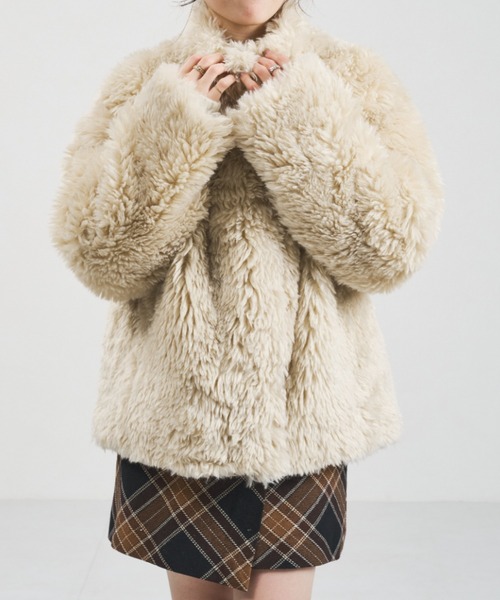 2025 Autumn & Winter Item シーズンムード高まるフェイクファージャケット 【 design 】ふんわりとした毛足感が魅力のフェイクファージャケット。 ボリュームのある素材感ながら、コンパクトなシルエットでバランスよく仕上げました。 首元まで包み込むスタンドネックデザインで、防寒性とトレンド感を兼ね備えた一着。 軽やかな着心地ながら、しっかりと暖かさも感じられるのがポイントです。 【 styling point 】デニムやミニボトムと合わせた カジュアルスタイルはもちろん、ワンピースやスカートと合わせたフェミニンコーデにも好相性。 羽織るだけでコーディネートが華やぐ、秋冬シーズンに活躍する主役アウターです。 ※ご覧のモニター環境や光の照射・角度により、 画像の色味と多少異なる場合がございます。 ご了承ください。 ---------------------------- 透け感 [なし] 裏地 [あり] 伸縮性 [なし] 生地の厚さ [厚め] ---------------------------- 【 お買い物をお楽しみいただく為に 】 ▼お気に入り登録をオススメします。 『♡』をクリックすると… ・《商品のお気に入り登録》で再入荷通知や ラスト1点の通知、セールやクーポンの通知も 受け取ることができます。 ・《ブランドのお気に入り登録》で新作商品や再入荷など、 お得な情報を受け取ることができます。