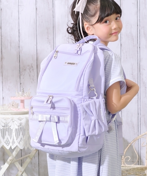 メイン収納がガバッと開いて中の荷物が見やすく取り出しやすいリュックサックです。 メゾピアノのロゴをプリントしたリボンやメタルプレートで、カジュアルなアイテムに高級感をプラスしました。 ショルダーの胸部分にはベルトがついており、肩からずれ落ちにくくお子さまが疲れにくい設計を実現。 その他にもDカンや長さを調節できるテープをプラス。 大容量ながら前面3つのポケットとサイドにも2つポケットがあり、小物を種類別に整理整頓できるのも便利です。 ICカードやすぐに取り出したいものを入れるのに便利なリボンのポーチ付きでです。 遠足や校外学習はもちろん、長期旅行や帰省などさまざまなシーンで大活躍します。 内側にお名前を記入できるタグつき。