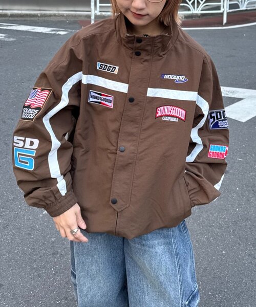 \ストリート感と個性をプラス/ 1枚で主役になるSOUNDS GOOOODらしいアウターが登場! ■デザイン 目を引くワッペン使いが特徴的な、レーシングブルゾン。 モノトーンカラーでまとめることで、派手になりすぎず、ストリートにもモードにも着こなせるデザインに。 胸元や袖のロゴワッペンがアクセントになり、他にはない個性を演出します。 カジュアルながらも洗練された印象を与え、スタイリングの主役になること間違いなしの一着です。 ■スタイリング シンプルなインナーに羽織るだけで、コーディネートが完成する主役級アウター。 デニムやチノパンと合わせてカジュアルに着こなすのはもちろん、スラックスと合わせてモードな着こなしもおすすめです。 足元はスニーカーでカジュアルに、ブーツで引き締めるのもお洒落。 ■お手入れ方法 洗濯:液温は40 ℃を限度とし、手洗いができる アイロン:底面温度120 ℃を限度としてアイロン仕上げができる タンブル乾燥:タンブル乾燥禁止 ・・・・・・・・・・・・・・・・・・・・・・ 透け感:なし 裏地:あり 伸縮性:なし 光沢感:なし 生地の厚さ:普通 ・・・・・・・・・・・・・・・・・・・・・・ ▼気になる商品をお気に入り登録 ♡をクリックして《お気に入り登録》がオススメです! 入荷情報や、クーポン情報が通知されるようになります。 ※画像の商品はサンプルを使用しております。実際の商品と若干の仕様が変更になる場合がございますので、予めご了承の上ご注文くださいますようお願いいたします ※屋外の光や照明の当たり具合で、実際の商品の色味とカラー別画像の色味に若干の違いが発生する場合がございます。詳細画像と併せてご確認の上、ご注文いただきますようお願い致します。 ※独自のタイムセールなどの施策により、実店舗と価格差が発生する場合がございます。 ※実際の店舗在庫につきましては、各店舗に直接お問い合わせください。