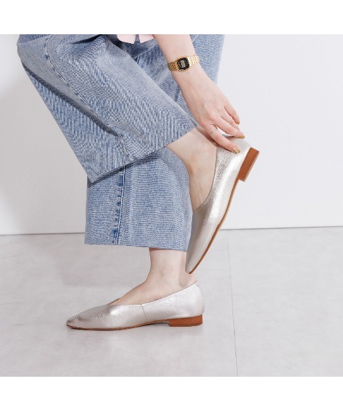 甲深めにウェーブされた履き口が印象的なフラットシューズ。 フラットながら、程よく長めのトゥと斜めに施されたウェーブカットが脚をすっきりと見せてくれます。 ソフトレザーを使用し、足に吸い付くようなフィット感が魅力。 かかとの芯もソフトに仕上げ、ノンストレスに履いていただけます。 スタイリッシュでありながら実用性も兼ね備えた一足です。 【LWG】プラチナ 【撥水】ブラック ※画像の商品はサンプルです。実際の商品と色味、仕様、加工、サイズ、素材等が若干異なる場合がございます。 滑りにくいソール ノンスリップ中敷 中敷きクッション つま先快適クッション 抗菌・防臭 <着用コメント> ◆Iさん【足幅:ふつう / 内反小趾気味】【普段のサイズ:22cm】 【着用サイズ:22cm/着用状況:ストッキング/サイズ感:ややきつい】 いつものサイズで快適に履け、かかとに芯がないため柔らかく靴擦れしにくい履き心地です。履き口はしっかり足を包んでフィットし、歩行時も安定しています。革が柔らかく幅にも窮屈さが出にくいので、長時間でも安心して履けるタイプです。 ◆Nさん【足幅:幅広 / 内反小趾気味】【普段のサイズ:23.5cm】 【着用サイズ:23.5cm/着用状況:ストッキング/サイズ感:ややきつい】 足を入れた瞬間に感じるソフトなフィット感が心地よく、革が非常に柔らかいため足全体に優しく馴染みます。普段、小指が当たりやすい方でも幅にゆとりがあり、楽に着用できます。カットラインが指股を程よく隠してくれるため、上品な印象でコーディネートしやすいデザインです。かかとにも芯が入っていないので足当たりが柔らかく、バブーシュのようにも履ける万能な一足です。 ◆Sさん【足幅:ふつう / 甲薄 / 外反母趾気味】【普段のサイズ:24.5cm】 【着用サイズ:24.5cm/着用状況:ストッキング/サイズ感:ゆったり】 しっかりとした作りながら、革がとても柔らかく足当たりが良い一足です。ストッキング着用時は普段と同じサイズでもややゆとりが出て、かかとが浮きやすい場合があります。一方、靴下で着用すると24。5cmがちょうど良くフィットし、安定した履き心地に。シンプルながら他にはあまりないデザインで、日常使いからお出かけまで上品に活躍します。 ●ヒール高:2cm ●素材:本革 ●原産国:日本 ●幅:E ●サイズ展開:22cm~26cm 【お気に入り登録していち早くお得情報をGET!】 ◆商品のお気に入り登録◆ カートの♡をクリックすると、完売カラーの再入荷・ラスト1点通知・セール通知を受け取ることが出来ます。 気になるアイテム/カラーに♡をつけておくと、あなたの元にうれしいお知らせが★ ◆ブランドのお気に入り登録◆ 新商品の入荷や、完売アイテムの再入荷など、いち早くブランドのお得な情報を受け取ることができます。 最新情報が知りたい方はぜひお気に入り追加してみてください。