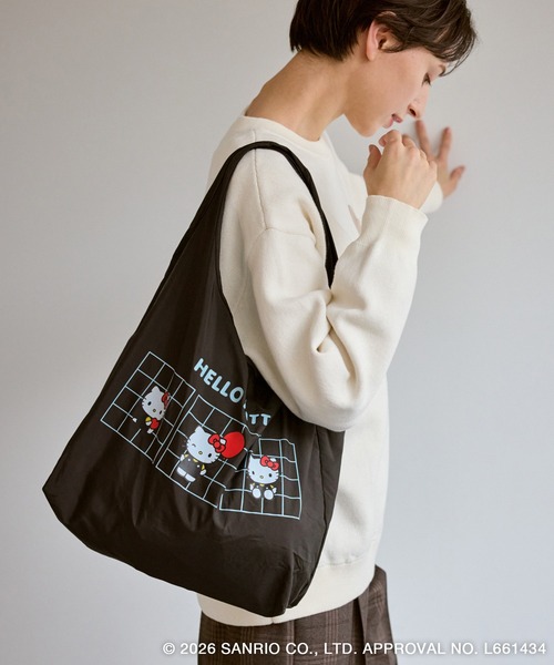 【素材感】・さらっとした柔らかい生地で軽量。・やや薄手の素材。【デザイン・シルエット】・コンパクトに折り畳むことが可能で毎日の持ち歩きに最適。・たっぷり入る大容量サイズで、普段使いに便利なシンプルなシルエット。・ポケットにもハローキティとタイニーチャムがプリントされており畳んでもかわいい。・カラビナ付きで、バッグやフックに簡単に取り付け可能。【カラー】・ブラック・キナリ・ベージュ・レッドの選べる4色展開。・各カラーに合わせたカラビナ付き。・明るい色はキュートに、落ち着いた色はシックに、コーディネートに合わせやすい。・ブラック(01)・ベージュ(27):ハローキティ・キナリ(16)・レッド(60):ハローキティ×タイニーチャム※撮影時の光、お使いのモニター環境によって色の見え方が違う場合がございます。【2026 Spring】【26SS】